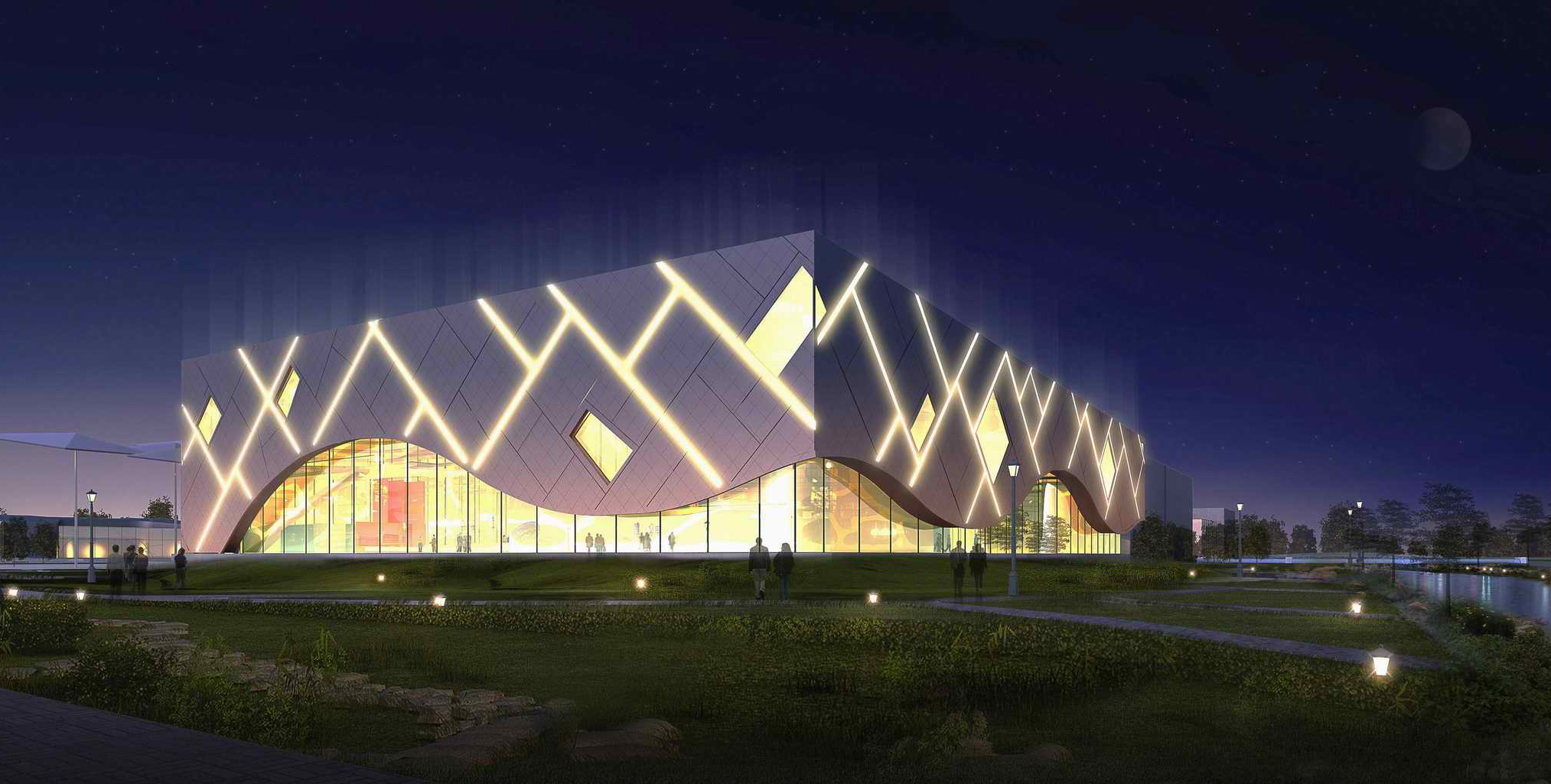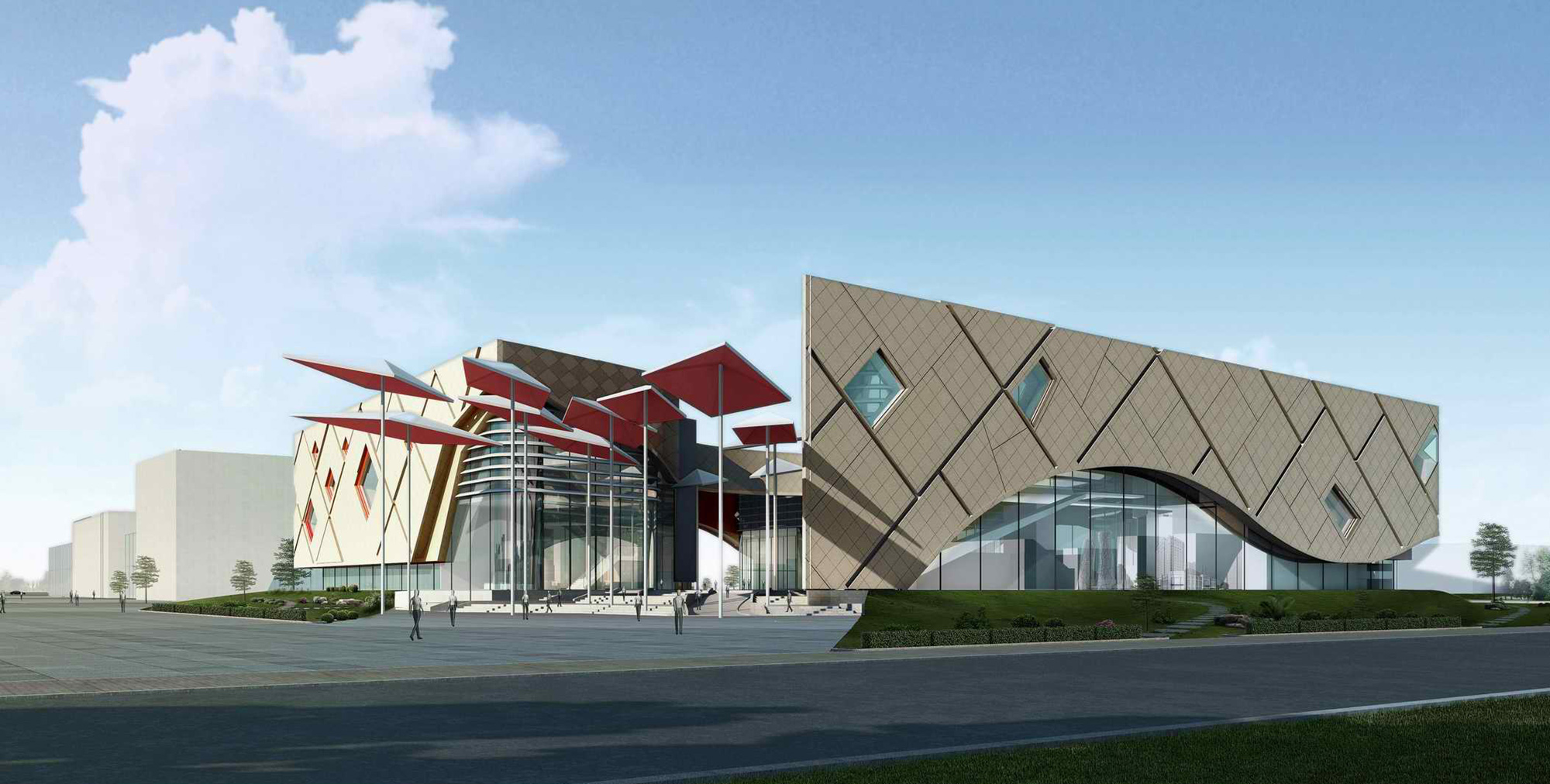 项目通过对城市公共建筑的功能思考,希望它能成为城市的窗口,城市通过它向外传递信息,市民通过它获取知识,市民与城市实现交流与互动。建筑以水作为线索,将不同主体的建筑,人,生态环境联系到了一起,这样的设计不单单从形式上,而是从意念上实现三馆合一。建筑通过多种空间设计手段的运用,使建筑空间内外兼顾,呈现出开放、具有活力的特质。