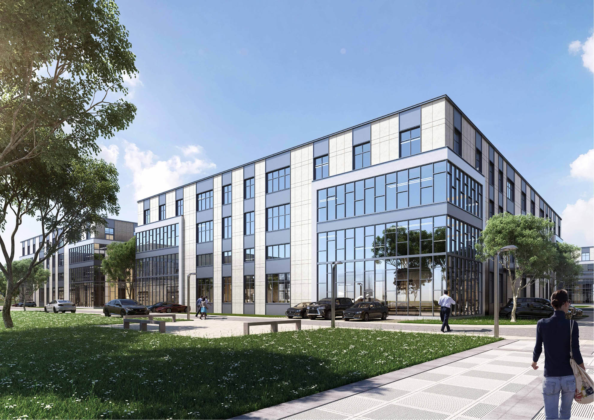 项目致力于打造高新科技研究平台,聚焦研发成果转化的创新型产业标杆园区。项目采用中轴对称的布局形式,形成一条纵向的景观轴线,同时也是来访参观的主要空间与路径,结合中轴两侧的优质企业办公区打造一个开放、绿色的园区核心示范区。建筑单体采用模块化的产品进行多样组合,实现工业建筑的标准化、产业化发展,提高效率降低成本。