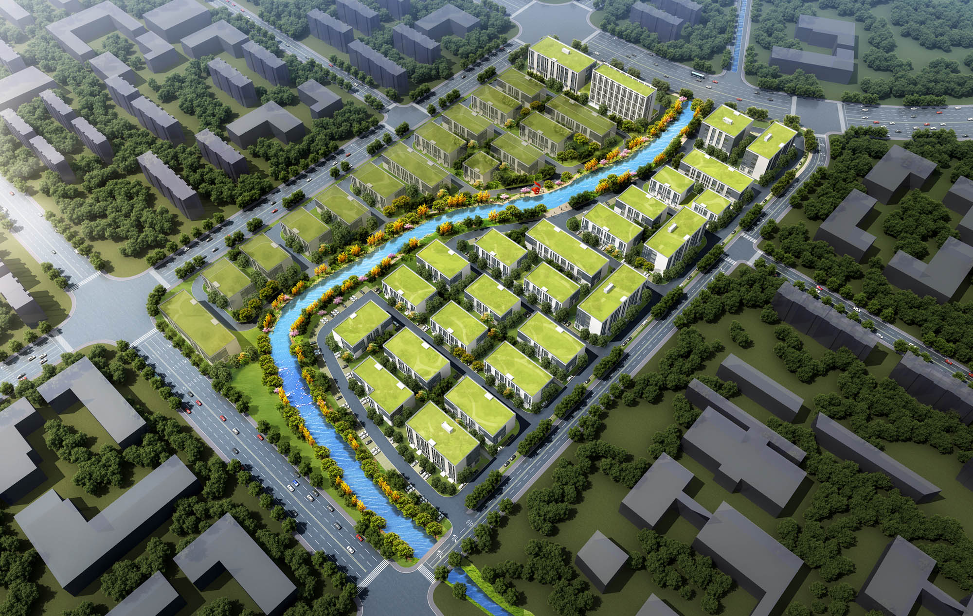 项目致力于打造中南高科以自动化设备、智能制造产业为主导的工作+生活一体化的活力智慧园区。项目采用一轴六街八组团的布局形式,即一条中央景观展示轴、六条企业生产街、七个生产组团、一个配套展示组团。园区景观围绕中央景观轴打造,进而渗透到组团间的绿化空间,形成层次清晰的景观体系。建筑单体采用模块化的产业进行多样组合,实现工业建筑的标准化、产业化发展。