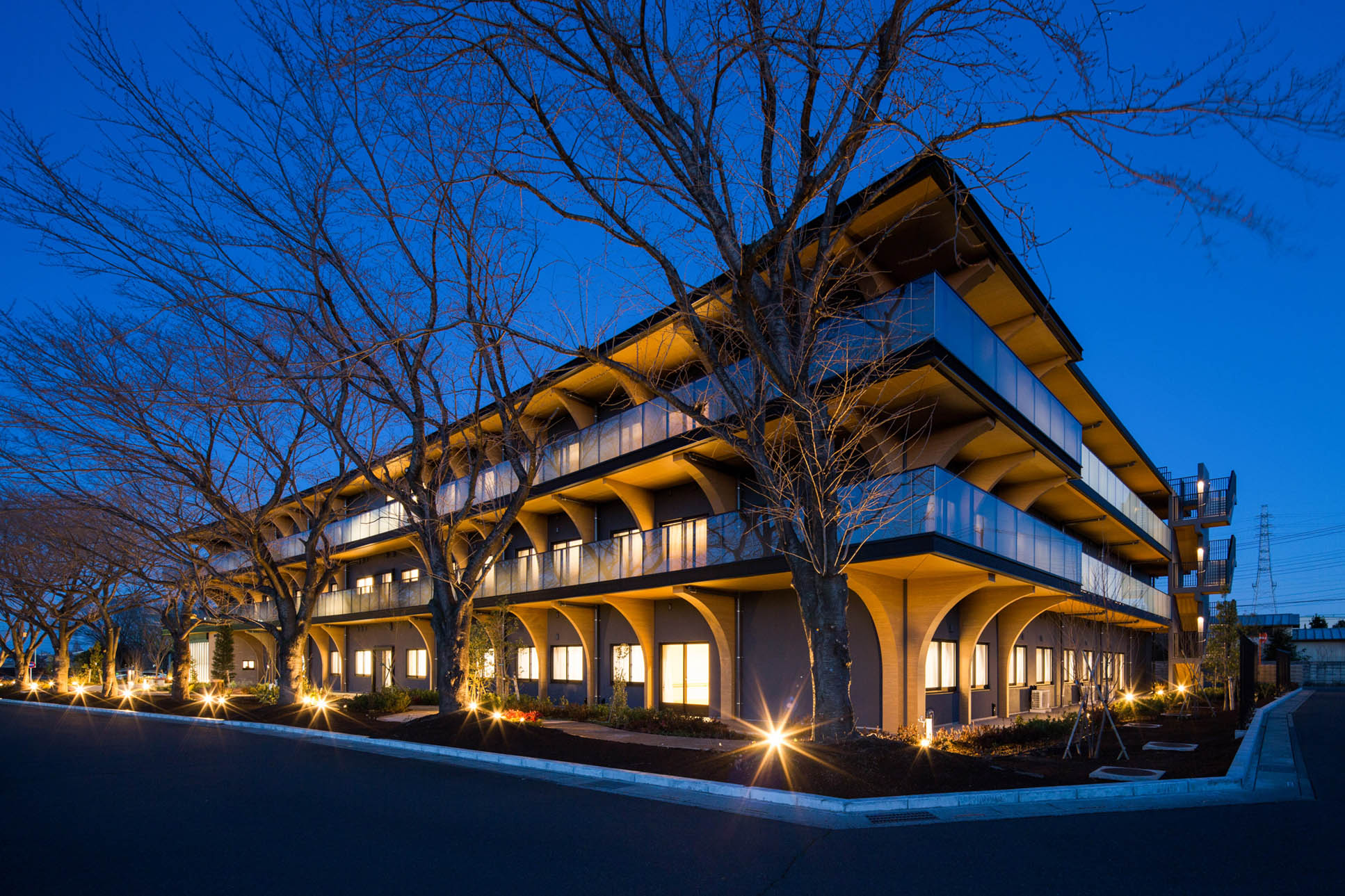 春日部特别养护老人之家位于埼玉县春日部市,建筑外墙采用传统斗拱式与现代材料的有机融合,既给老人带来温馨的居住感受,又能体现设施的高端性和先进性。阳台转角处的大尺度挑檐形式,在保证阳台尺寸和遮阳需求的基础上,让整个设施轻盈简洁,富有张力。