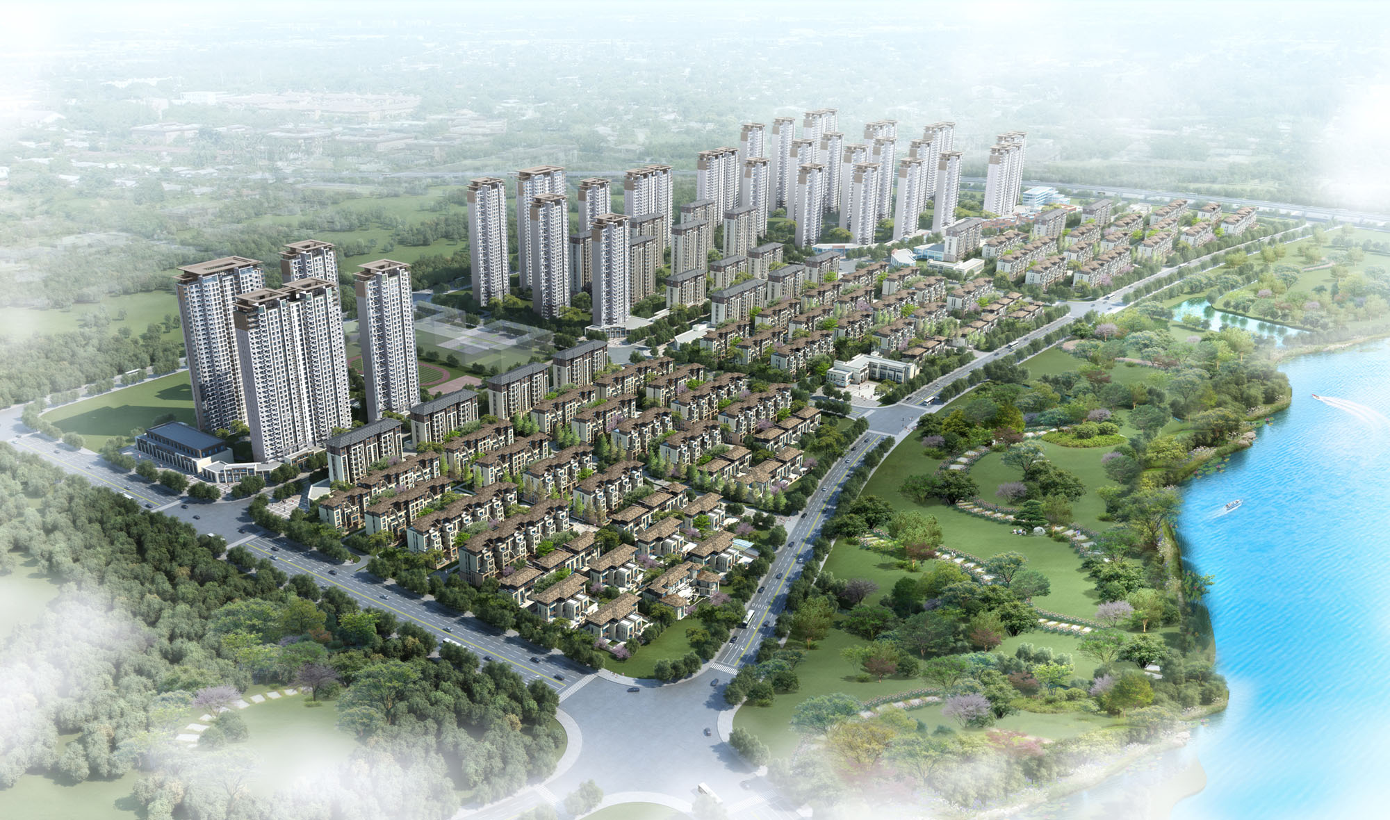 项目总体布局形成“一横三纵六组团”的规划结构;产品涵盖低层、多层、小高层及高层,南低北高,东西错落,天际线变化有致,沿径河形成丰富的滨水城市界面。